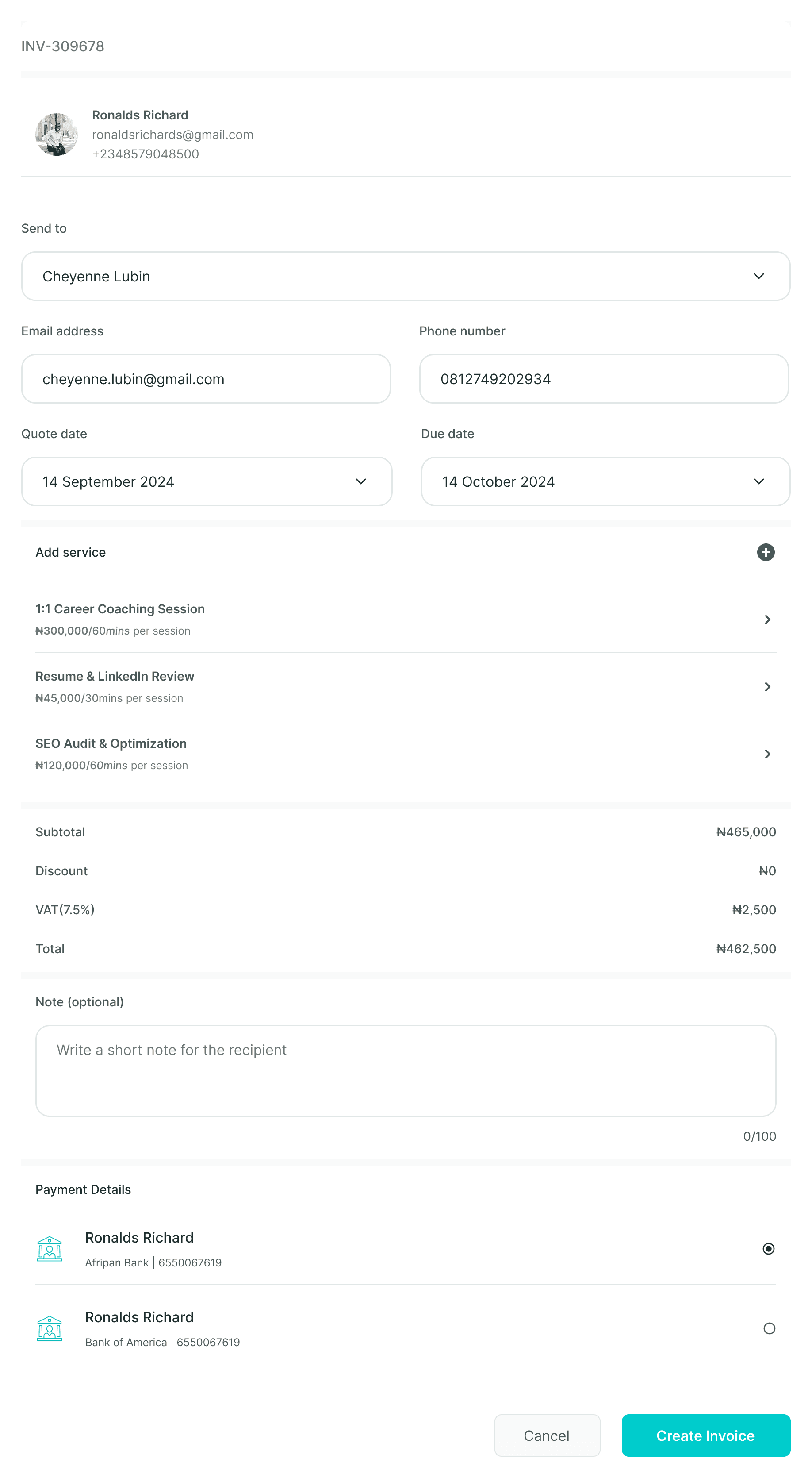 Most service providers rely on multiple disconnected tools to run their business: Calendly for scheduling, Google Sheets for tracking clients, bank transfers for payments, and Word documents for invoices.